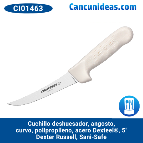Cuchillo deshuesador, angosto, curvo, polipropileno, acero Dexteel®, 5″, Dexter Russell, Sani-Safe, CI01463 / S131-5-PCP