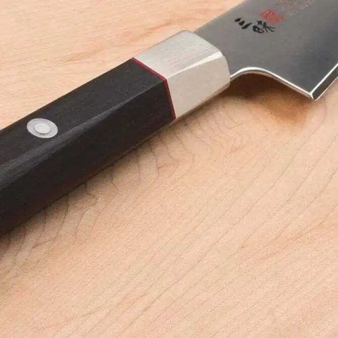 Este cuchillo japonés especializado está fabricado en acero inoxidable VG-10, el cual ofrece un filo duradero, gran resistencia a la corrosión y dureza superior. El mango octagonal de madera laminada negra, con refuerzo en níquel/plata, brinda equilibrio y control.