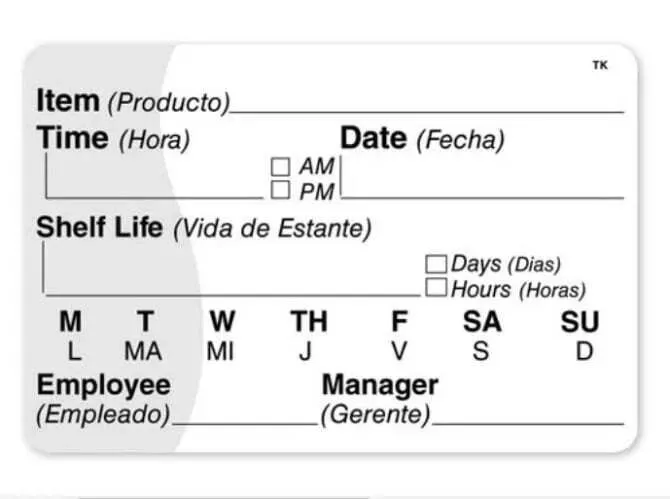 Etiquetas adhesivas reposicionables con cara sintética para mayor durabilidad. Facilitan el cumplimiento de normativas de seguridad alimentaria (HACCP).