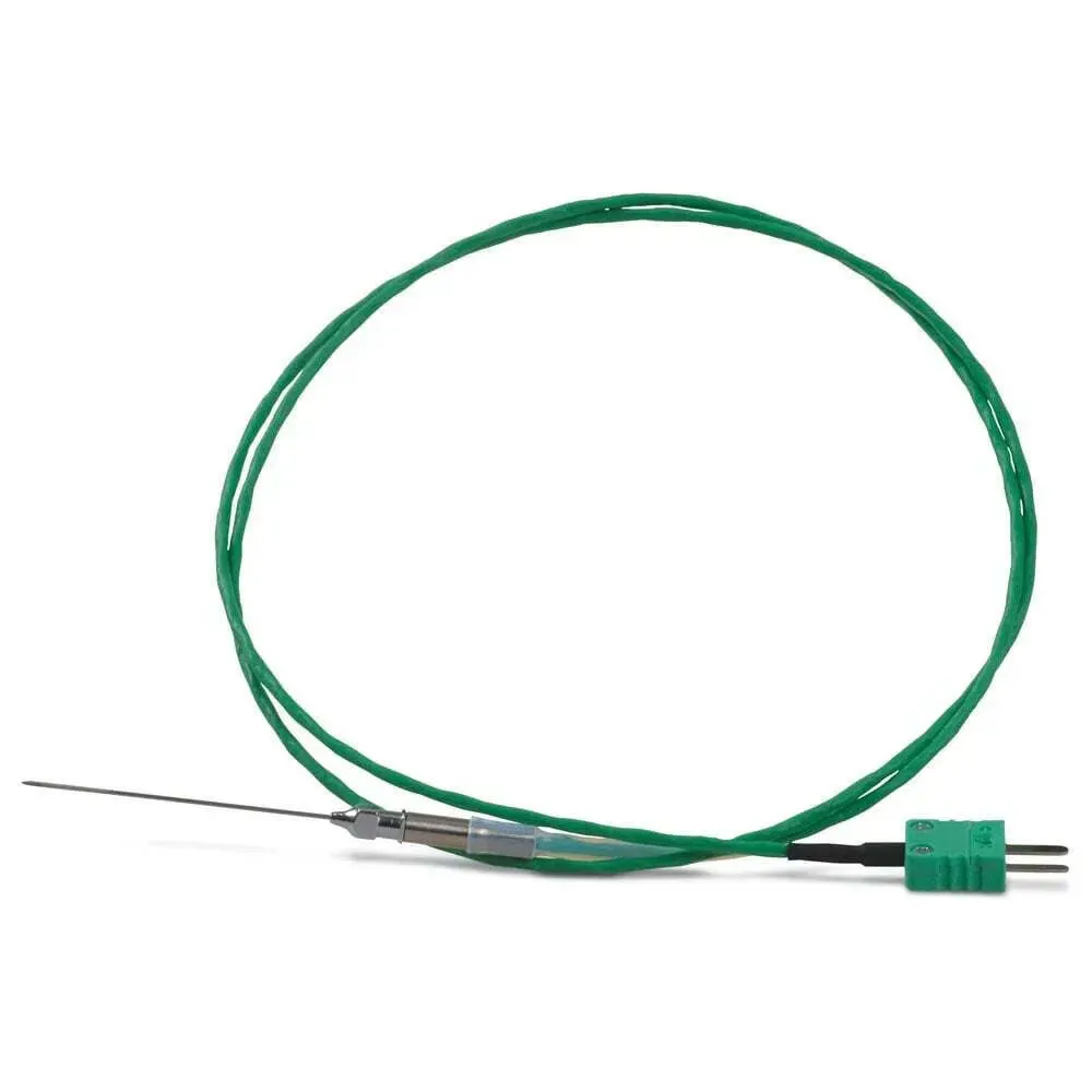 Una sonda ultra fina de 6.35 cm | 2.5″, diseñada para penetrar materiales blandos o semiblandos con mínima intrusión. Posee un cable de 102 cm | 40″ recubierto de teflón, resistente al calor hasta 232°C | 450°F. Es ideal para sous vide y cualquier aplicación que requiera mediciones delicadas. Compatible con cualquier termómetro de termopar con conexión tipo “K”. No debe sumergirse completamente en líquido.